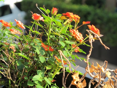 この暑い中、キッチンの脇でミニバラが元気に咲いていました。